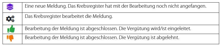 Zudem wird nun bei jeder Meldung ein Status angezeigt, sodass Meldende besser nachvollziehen können, in welcher Bearbeitungsphase sich ihre Meldung im Krebsregister befindet.